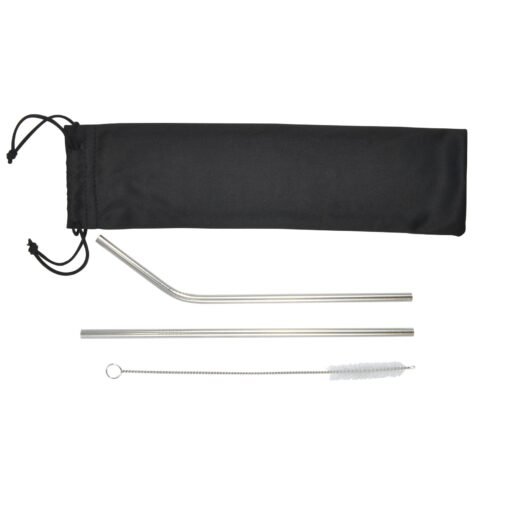 Set of three reusable stainless steel straws in a cotton drawstring bag. The set includes a smoothie straw, an angled straw, a straight straw and a cleaning brush. Reusable straws are an environmentally-friendly alternative to single-use plastic straws and are a great way to send a positive message. Branding is on the cotton drawstring bag. [...]