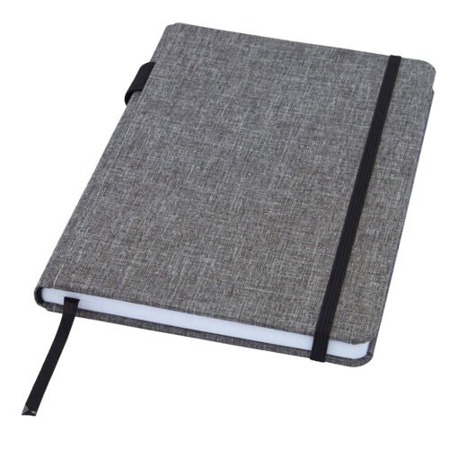 A5 size notebook with cover made of RPET fabric. Features 96 sheets 70 g/m recycled paper with lined layout, a pen loop and ribbon marke. Product Size: 145mm(w) x 215mm(h). Available Colours: Grey. Material: Recycled paper. MOQ: 25 | Quantity less than MOQ needs to be quoted, Please contact our staff.