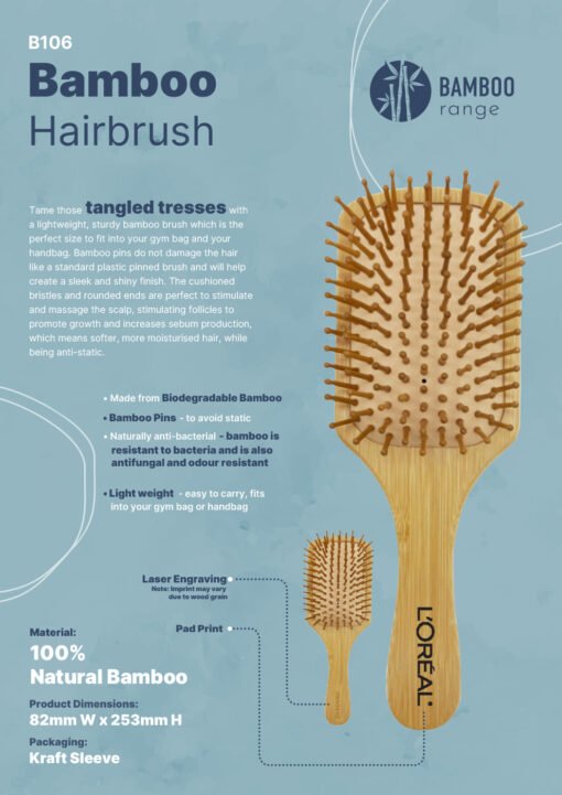 Introducing our Bamboo Hairbrush - a compact, sustainable solution that gently smooths hair without causing damage. Enhance your hair care routine with this eco-friendly essential!