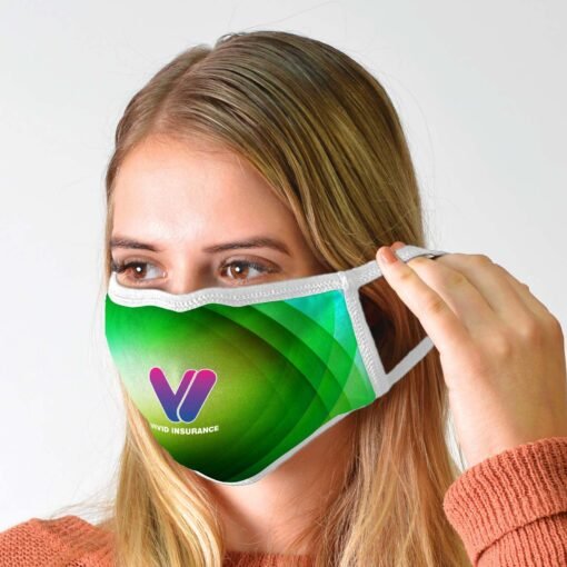 Shield Cotton Face Mask: Reusable and washable polyester, cotton, and spandex mask with custom logo options available. Provides protection against particles and droplets for outdoor use.