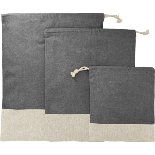 Stay organised while traveling with the eco-friendly Split Recycled 3pc Travel Pouch Set, made from pre-consumer recycled cotton. Perfect for toiletries, cables, and clothing, these pouches come in three sizes and feature a convenient packing design. Material: 70%-80% Recycled Cotton, Size: 355mm(w) x 457mm(h), Printing Methods: Print.