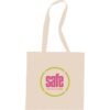 Slim design perfect for conventions and tradeshows. Open main cotton compartment with double 29 inch reinforced handles. Reusable and a great alternative to plastic bags.