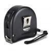 Locking tape measure with a tough outer case and an eight-metre metal tape featuring both inches and centimetres. Other features include a belt clip and a wrist strap.
