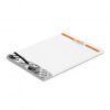 A6 note pad with 50 leaves of quality 70gsm paper and a cardboard back. It is printed using four colour process, which gives the option of unlimited spot colours or stunning full colour at no extra cost. PMS colour matches are only approximate. Edge-to-edge printing is available and a production lead time of 25 working days applies to this product. This item can only be ordered in the quoted order quantities.