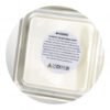 High-quality 215g aromatherapy vanilla-scented candle in a glass vessel. An ingredients label is on the product’s base.