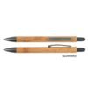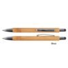Push button ballpoint pen made from bamboo with rubber stylus for touch screens.