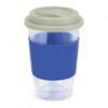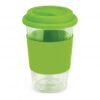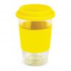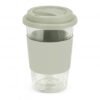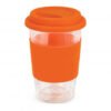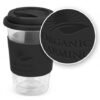 Trendy 350ml double wall borosilicate glass coffee cup which has a secure push on silicone lid and a large silicone band. The double wall keeps drinks hot for longer and the surface remains comfortable to touch. The lid and band can be mixed and matched in any colour combination from the standard colours at no extra cost. Up to five different colour combinations are included in the price and more are available for an additional charge. Borosilicate is a lightweight glass which is exceptionally strong and shatter resistant. Glass is a natural choice for a clean, pure taste and is a safe and reusable plastic alternative. It is presented in a natural gift box. This product is not dishwasher safe and handwashing is recommended.
