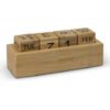Convenient bamboo desk calendar that will never go out of date. It features interchangeable blocks that display both the days and months. Bamboo is a natural material and because the plant is fast growing, it places less demands on natural resources and produces a material that is durable and versatile. Bamboo can also produce unavoidable variances in the grain pattern, colour and branding.