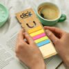 Bamboo ruler bookmark with a pad of yellow adhesive notes and five pads of different coloured adhesive flags. Each pad comes with 25 adhesive leaves. Measurements are printed with black ink in centimetres and inches. Bamboo is a natural material and because the plant is fast growing, it places less demands on natural resources and produces a material that is durable and versatile. Bamboo can also produce unavoidable variances in the grain pattern, colour and branding.