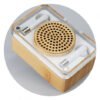 Unique Wireless Speaker Earbud Set manufactured from bamboo has a connectivity range of up to 10 metres. The Speaker will play for 15 hours of playing time from a full charge, the earbuds will play for 3 hours.