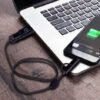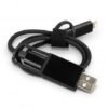 Versatile 50cm Type-C charging cable with multiple adaptors. It features dual inputs with Type-C and USB-A adaptors at one end and triple outputs at the other (Type-C and twin Micro-B and Lightning connectors). The cable is braided for added durability and can be tidied away with the supplied velcro cable tie.
