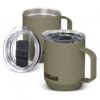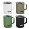 CamelBak is recognised as a global leader for designing and manufacturing innovative hydration solutions that last a lifetime. This classic double wall, vacuum insulated stainless steel mug has a capacity of 350ml and keeps drinks cold for six hours or hot for up to four hours. It has a tough powder coated finish and a comfortable easy-grip handle. Horizon has a smart push on lid with a secure silicone seal and a spill-resistant Tri-mode sliding closure that controls the beverage flow when open. A non-slip silicone base provides a soft landing on surfaces to avoid scratches and spills. The CamelBak logo is printed on the mug and debossed on the lid. Horizon is BPA-free and laser engraves to a shiny steel finish. It is presented with a leaflet that contains care information and the Got Your Bak lifetime guarantee details. This product is not dishwasher safe and handwashing is recommended.