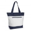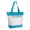 Smart two-tone tote bag with a rounded gusset and a sewn in base for added capacity. It is manufactured from tough 600D polyester and has a zippered front pocket, a secure zippered top closure and long woven carry handles so it can be comfortably carried on a shoulder.