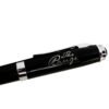 This popular roller ball carbon fibre pen has a delightful woven patterned fabric captured under the glass. With gloss black and silver finish. Supplied with black ink.