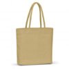 Delightful high fashion laminated natural jute tote bag with padded cotton handles. It has a rounded gusset and a sewn in base for added capacity.