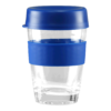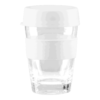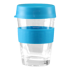 Introducing our Carry Cup Glass 340ml, a chic glass coffee cup with push-down PE lids and colorful silicone bands. Mix and match lids and sleeves in 36 combinations, with 6 vibrant color choices available. Perfect for eco-conscious coffee lovers!