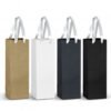 Paper wine carry bag made from 180gsm FSC-certified materials with coloured ribbon handles. The gusset and top edge are reinforced for added strength. This bag is perfect for wine and champagne gifting or presentation.