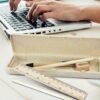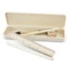 Unique rectangular pencil case which is manufactured from a 50/50 blend of natural wheat straw fibre and BPA-free polypropylene. Included inside the pencil case is a 15cm wooden ruler with measurements in inches and centimetres, two wooden HB pencils, a wooden pencil sharpener and a retractable ballpoint pen with a cardboard barrel.