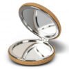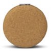 Compact mirror with a hinged cover and natural cork exterior. It features two mirrors one normal, and one two times magnification. When cork is harvested only the outer bark is removed from the tree. This allows the tree to continue growing and replenishing the bark. It also has the benefit of a comfortable soft-touch texture while being very durable.
