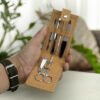 Handy six-piece stainless steel manicure set in a padded cork pouch. The pouch features a secure dome closure and smart matching stitching.