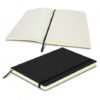 On-trend medium-size notebook with 80 leaves (160 pages) of high quality 80gsm lined cream paper. It has a flexible cover that is finished with heather style PU which produces a delightful woven look and thermo debosses to a stunning two-tone finish. Other features include an elastic closure band and a bookmark ribbon.