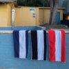 This terry finish towel is made from 100% jacquard cotton in yarn dye.