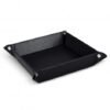 Compact valet tray made from stylish leather-look PU. This versatile tray easily collapses and can be reconstructed using snap fasteners, and is ideal for holding keys, trinkets or playing dice games.