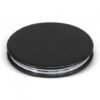 Compact mirror with a hinged cover and black PU exterior. Essence features two mirrors with one being a magnification mirror.