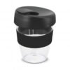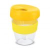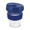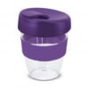 Crystal-clear 350ml reusable coffee cup with a heat-resistant silicone band and a secure screw on lid with a splashproof flip closure. The cup is manufactured from AS plastic and the lid is polypropylene. Both materials are BPA-free. The lid, flip closure and band can be mixed and matched in any colour combination from the standard colours at no extra cost. Up to five different colour combinations are included in the price and more are available for an additional charge. It can be presented in an optional natural gift box on request. This product is not dishwasher safe and handwashing is recommended. Express Cup Claritas is protected under New Zealand Design Registration No. 419451 and Australian Design Registration No. 361937.