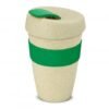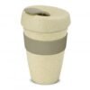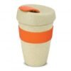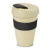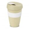 Unique 480ml reusable coffee cup which is manufactured from a 50/50 blend of natural rice husk fibre and BPA-free polypropylene. It has a heat-resistant silicone band and a secure screw on lid with a splashproof flip closure. The flip closure and silicone band can be mixed and matched in any colour combination from the colour palette at no extra cost. Up to five different colour combinations are included in the price and more are available for an additional charge. An optional natural gift box is available on request. This product is not dishwasher safe and handwashing is recommended. Express Cup – Natural is protected under New Zealand Design Registration No. 419451 and Australian Design Registration No. 361937.