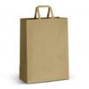 Extra-large paper carry bag made from 180gsm FSC-certified materials with a reinforced base and square-folded 100gsm paper handles. This bag is portrait orientated with handles and gusset along the shorter edges.
