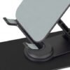 This stylish and functional phone stand will improve any hands-free phone and tablet experience. Made from robust aluminium alloy and steel with a tough powder coated finish, this phone and tablet stand’s thin, compact design means it folds smoothly down for easy transportation, perfect for work, entertainment or travel. The 360-degree rotating base swivel and 120-degree viewing angle adjustment allow you to find the perfect angle, and non-slip silicone pads on the cradle and base ensure a secure grip, keeping your device in place.