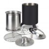 Satisfy your appetite for adventure with the Frontier Camp Fire & Cooker. Made from stainless steel with a tough powder coating, this versatile cooker is ideal for camping, or using as a small cooker or fire in the garden. The cooker is fuelled by wood pellets, which are placed into the inner chamber. Once the fuel is alight, put the BBQ grill on top of the cooker and start grilling. The cooker is presented in natural packaging with Frontier branding and includes a small bag of wood pellets and instructions for use.