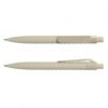 Retractable ballpoint pen with a natural bamboo barrel and black trim made from PLA plastic derived from corn starch. The pen has a black large volume refill with 1200 metres of German manufactured Dokumental ink.