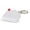 House-shaped 1m locking tape measure key ring with both centimetres and inches on the metal tape.