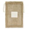 This unbleached jute net produce bag can be reused many times. It is designed for transporting fruit and vegetables while allowing them to breathe so they arrive home in the best possible condition. It has a drawstring closure and an unbleached cotton patch for branding.