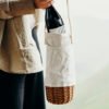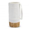 This premium wine carrier made from 380gsm cotton canvas and natural willow wicker provides a unique wine presentation option. With foam padding to insulate and protect wine bottles and a wicker base for added strength, this will fit most wine bottles and is ideal for gifting and outdoor events. The carrier has a woven cotton carry handle, a drawstring closure and a slip pocket.