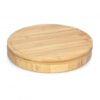 Tasteful bamboo cheese board which swivels open to reveal two cheese knives and a cheese fork neatly stored inside. Wood is a natural material which produces unavoidable variances in the grain pattern, colour and branding.
