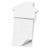 Handy A7 size note pad which has 25 leaves of lined 70gsm paper and a unique house-shaped magnetic holder that attaches to a fridge. Branding is on the magnet.