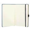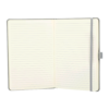 Recycled polyurethane cover, Document pocket on the inside of the back cover, 80 recycled cream lined pages, Colour matching ribbon page marker, elastic band and pen loop