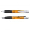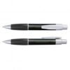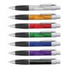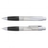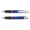 Retractable plastic ball pen with a soft rubber grip, a frosted translucent barrel and metallic silver trim. It has a blue large volume refill with 1800 metres of German manufactured Dokumental ink.