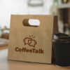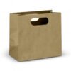 Medium-sized paper carry bag made from 180gsm FSC-certified materials with die cut handles. The handles and gusset are reinforced with 600gsm card for added strength. This bag is landscape orientated with handles and gusset along the longer edges.
