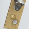 Convenient fridge-mounted bottle opener. This useful tool has a magnetic cap-catcher built into the natural bamboo backing board. The bottle opener is made from iron and the product is presented in natural packaging with NATURA branding.