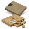 Quality rectangular bamboo cheese board with a slide out cutlery drawer including two cheese knives and a cheese fork. Kensington is presented in a natural packaging with NATURA branding.