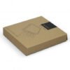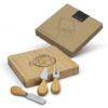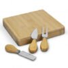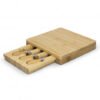 Quality square bamboo cheese board with a slide out cutlery drawer including two cheese knives and a cheese fork. Kensington is presented in a natural packaging with NATURA branding.