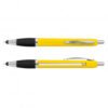 Retractable plastic ballpoint pen with a stylus and a spring-loaded banner which can be branded in full colour on both sides. The pen has a soft rubber grip, translucent trim, and 1200m of German manufactured Dokumental ink. The refill is available in blue or black ink. A production lead time of 40 working days applies to this product by air freight and larger orders can be sea freighted on request to reduce the freight cost.