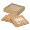 Set of four robust and stylish natural cork coasters that provide protection from heat and spills. When cork is harvested only the outer bark is removed from the tree creating a sustainable resource that is replenished throughout the life of the tree. It also has the benefit of a comfortable soft touch texture while being very durable. This set is nicely presented in a natural cardboard gift box with a window to show off the brand.