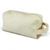 Smart toiletry bag which is manufactured from unbleached cotton canvas with a stylish natural cork accent panel around the base. It has a carry handle and a matching zippered top closure with a canvas zipper pull.