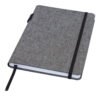 A5 size notebook with cover made of RPET fabric. Features 96 sheets 70 g/m recycled paper with lined layout, a pen loop and ribbon marke.
