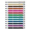 Retractable aluminium ball pen with an anodised barrel and shiny chrome accents. It has a stylus for use with touch screens and a black refill with 1000 metres of German manufactured Dokumental ink. The barrel laser engraves to an oxidised white colour and Panama can be presented in an optional sleeve or a gift box.